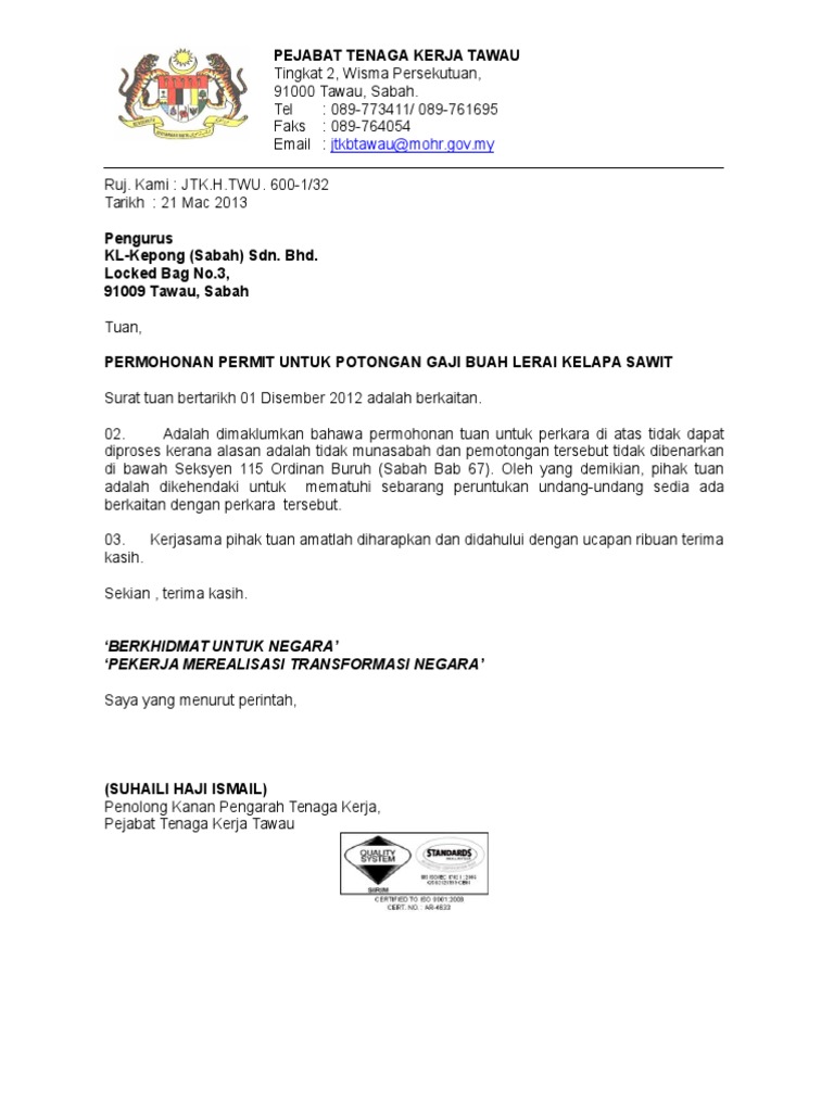 | kami warga jabatan tenaga kerja sabah mengucapkan selamat menyambut bulan ramadhan. Pengurus lkd memegang jabatan selama 5 (lima) tahun terhitung sejak tanggal ditetapkan. Jabatan tenaga kerja sabah enforces the following labour laws in sabah: Selain dari itu, anda juga dikehendaki melaporkan kemalangan tersebut dalam tempoh 10 hari daripada tarikh kemalangan itu berlaku ke jabatan tenaga kerja. Jabatan buruh dan kebajikan) until 1968 where labour and welfare functions were.
