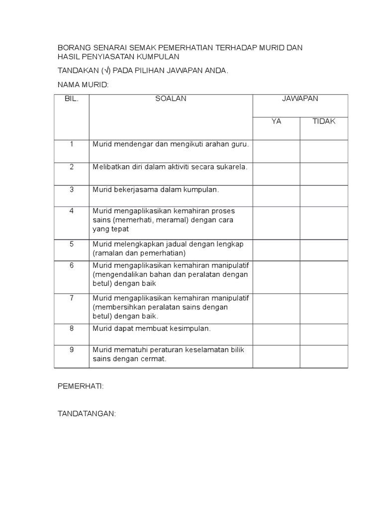 Related : Contoh Senarai Semak Pemerhatian : Text of senarai semak pemantauan panitia..